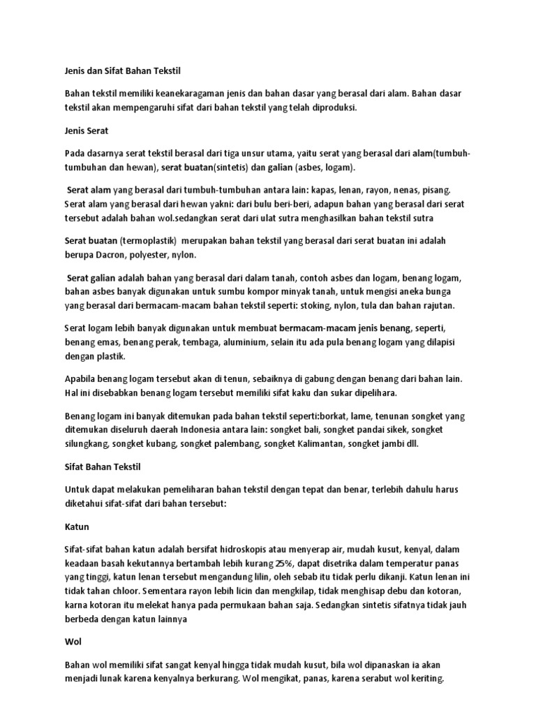 Jenis Dan Sifat Bahan Tekstil Pdf